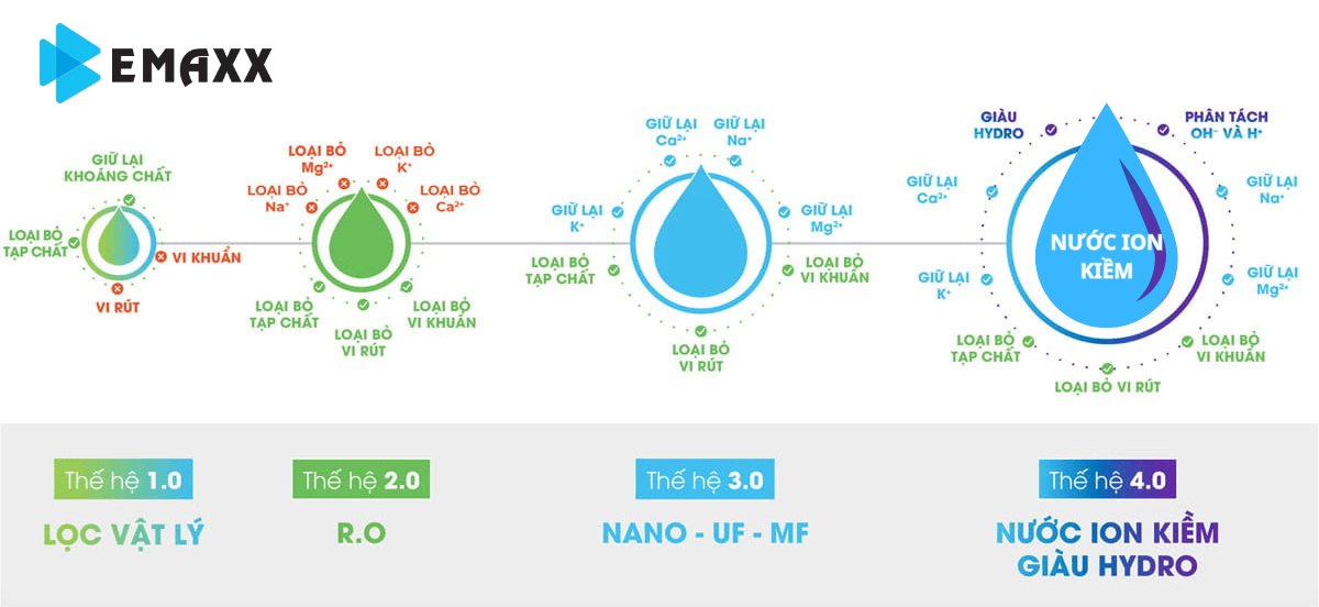 Bên cạnh tạo ra nước iON kiềm giàu Hydro và vi khoáng tự nhiên tốt cho sức khỏe thì máy lọc nước điện giải ion kiềm còn mang đến nhiều loại nước chức năng khác phục vụ đa dạng nhu cầu về nước mỗi ngày.